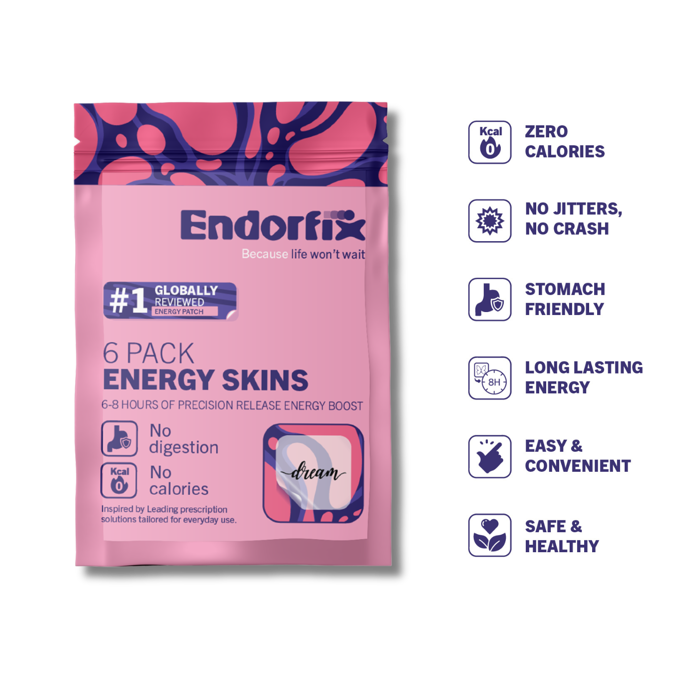 Six energy patches in one pack, each delivering 6–8 hours of sustained focus without jitters.